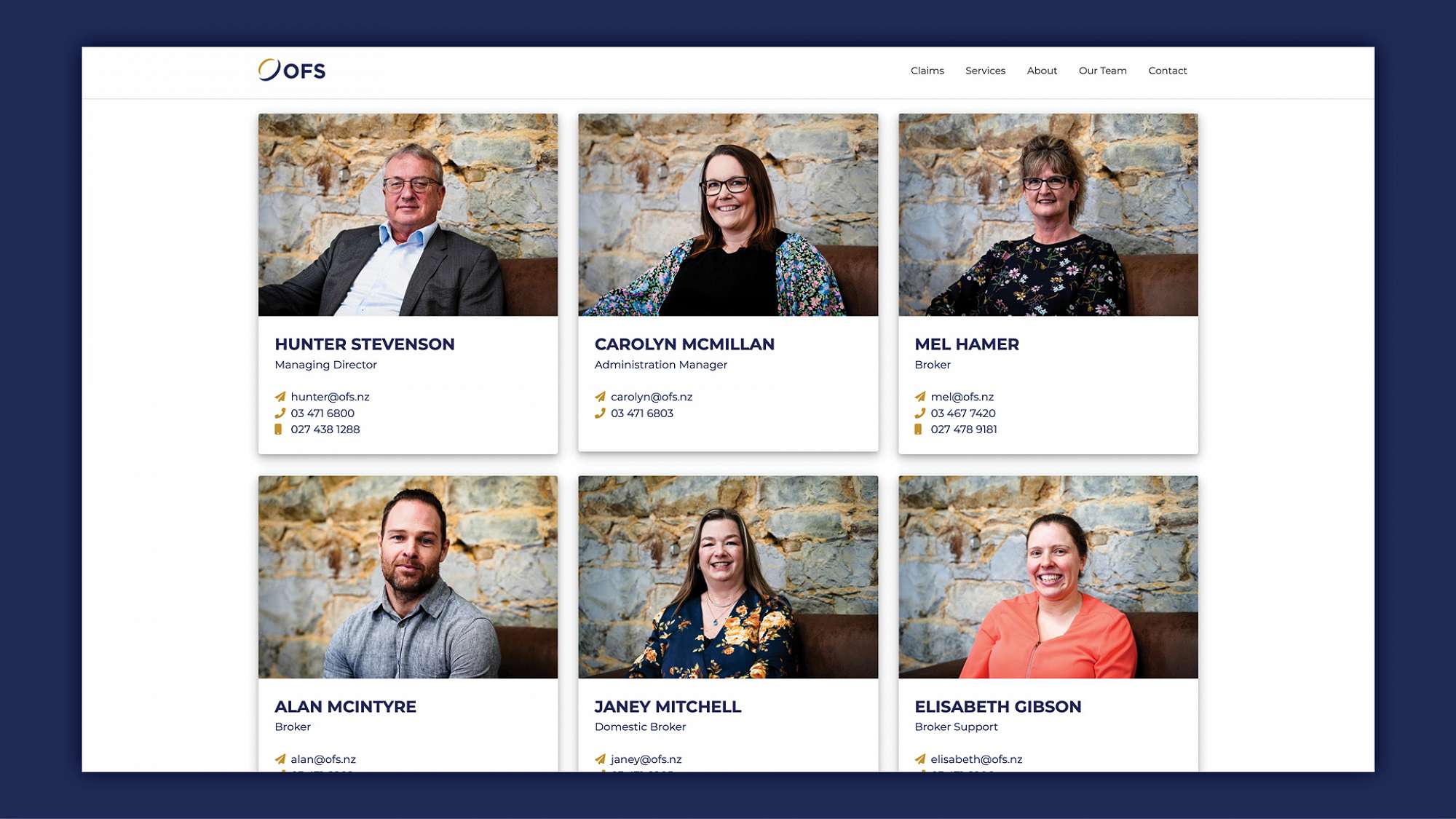 The website's overall design needed to be image-led, people-focused, clean and minimal. With a simple but recognisable colour palette and a morning-tea/team photoshoot, we were able to provide OFS with an online identity that punches above the rest.